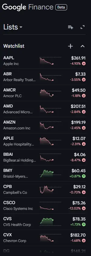 It’s another one of those Thursdays! You know it’s a bad day when you open Google Finance and your watchlist looks like this: